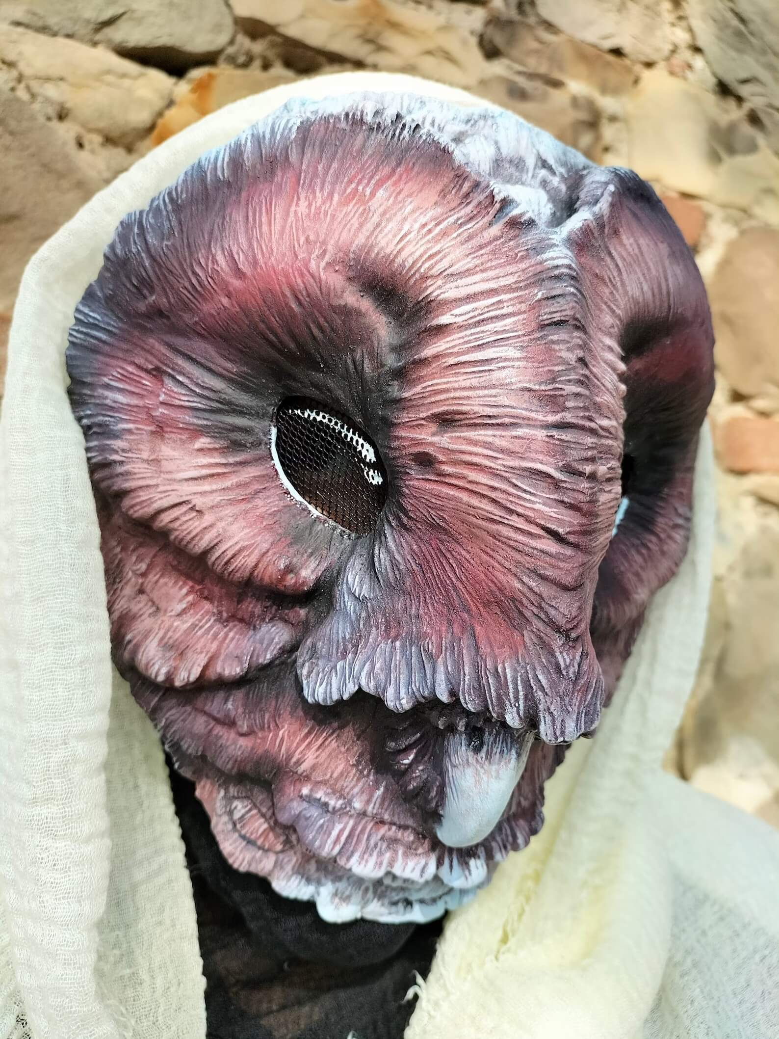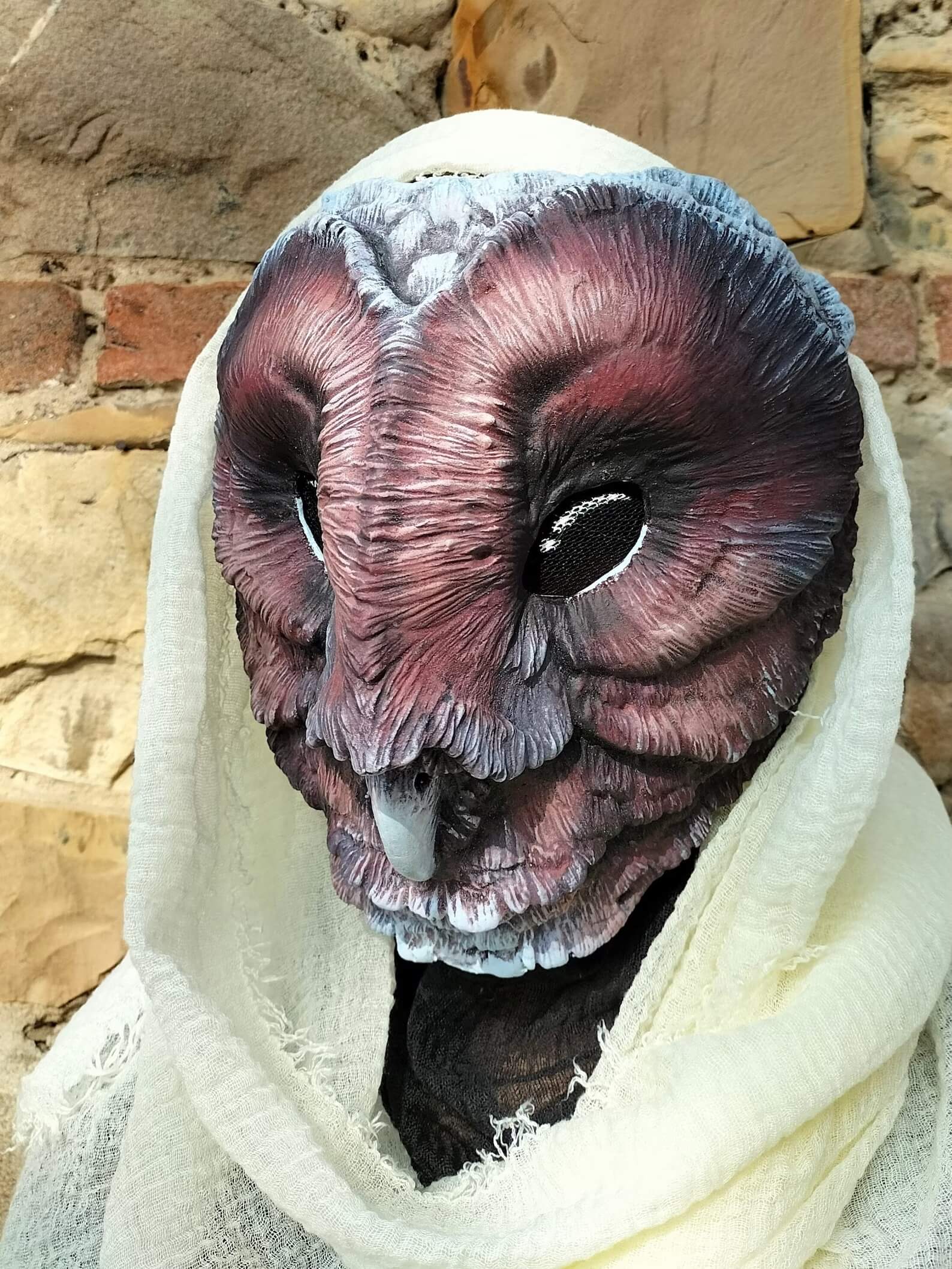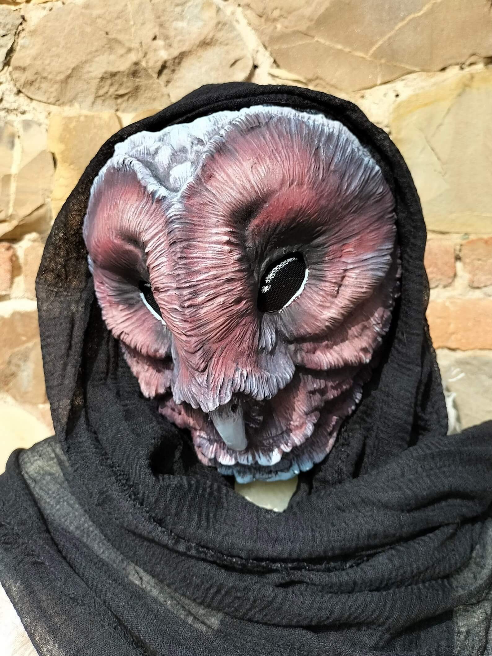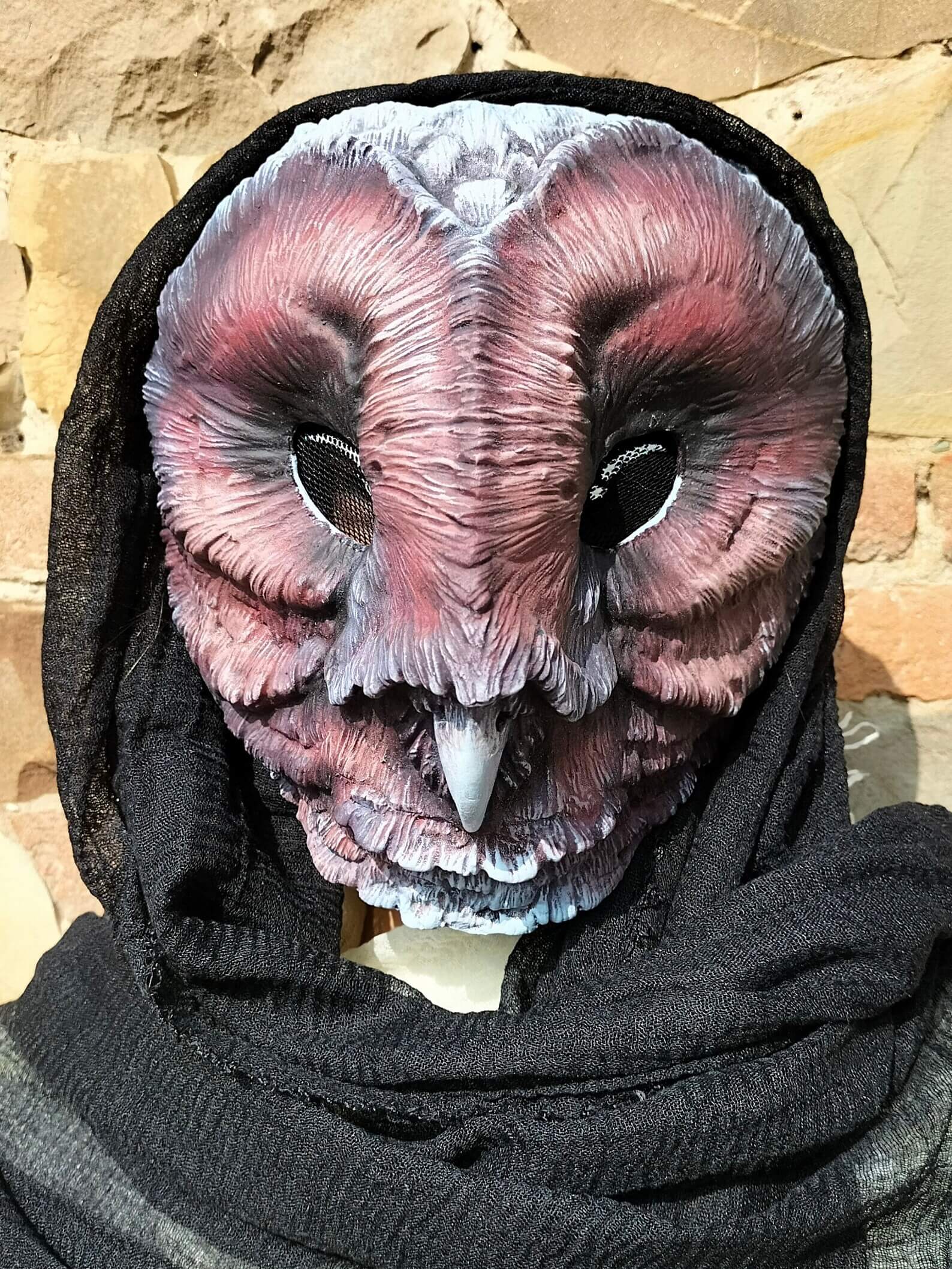 Dark Barn Owl Resin Mask: Hand-Carved Detail for Cosplay & Wiccan Wear